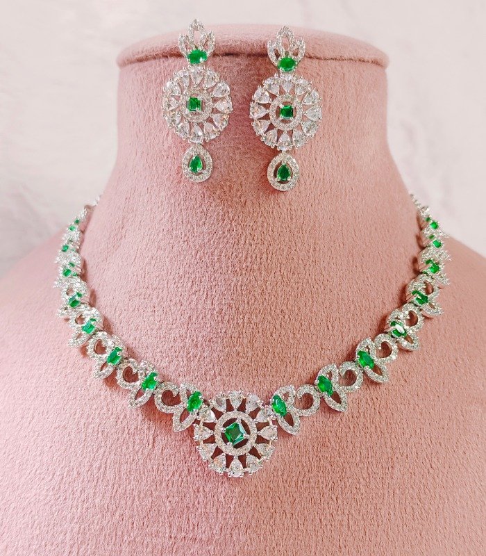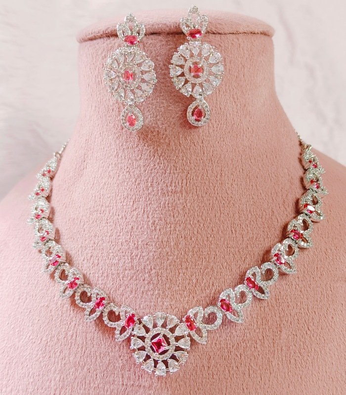 Add timeless Diamond Necklace Set brilliance to your collection with this luxury-inspired CZ necklace set, designed to look and feel like real diamonds. Perfect for women, teens, and brides-to-be, it sparkles under every light and enhances both ethnic and western outfits. Wholesale-ready for global retailers seeking trending yet long-lasting artificial jewelry.