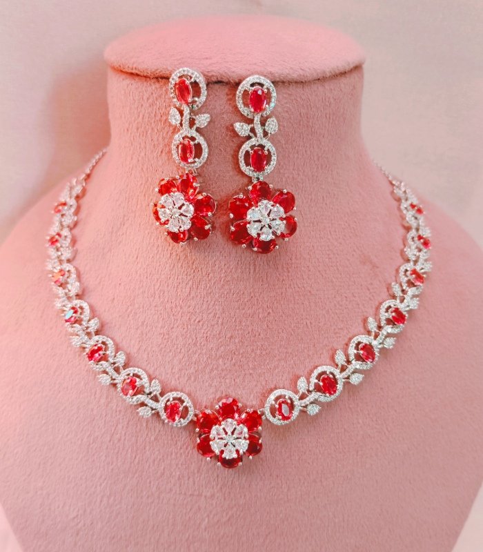 Download CatalogThis crystal-clear CZ bridal necklace with earrings brings a platinum-white sparkle, making it perfect for European weddings and Gulf events. Trusted by importers and wholesale dealers worldwide.