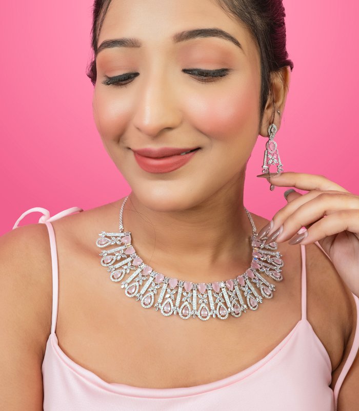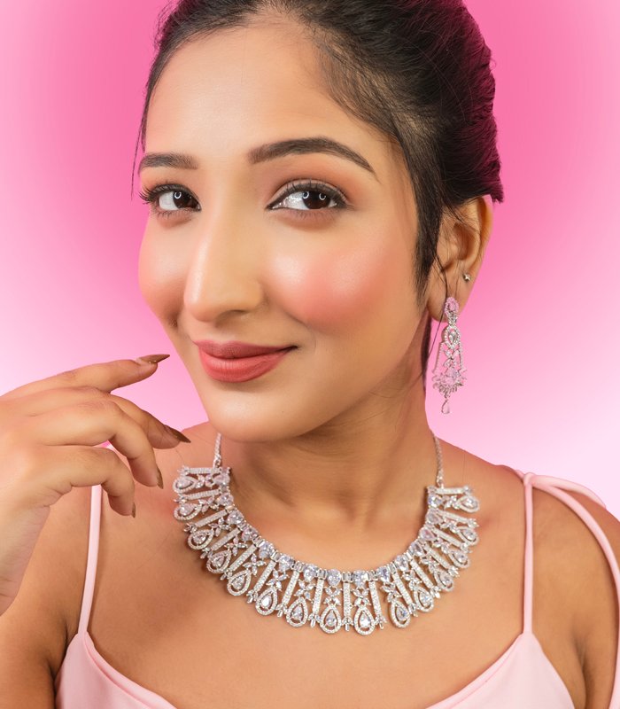 Download CatalogSophisticated American diamond jewelry with premium gold silver plating, Lightweight yet luxurious tailored for bridal boutiques and online global marketplaces.