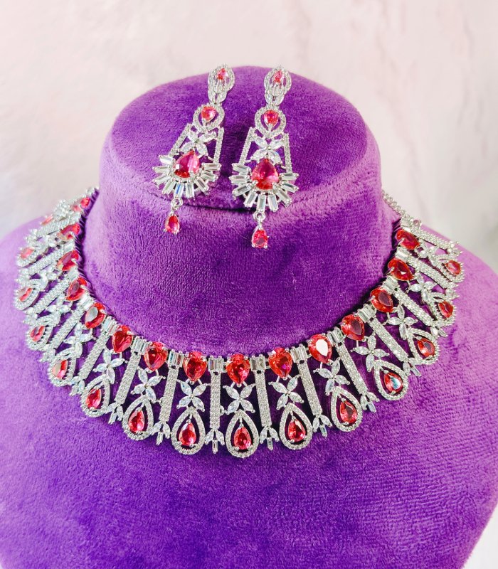 “AAA-grade Cubic Zirconia stones —American Diamonds available in ruby, emerald, sapphire, and more shades — designed for international fashion jewellery collections ”Fully Customizable as Per Customer Requirement” |