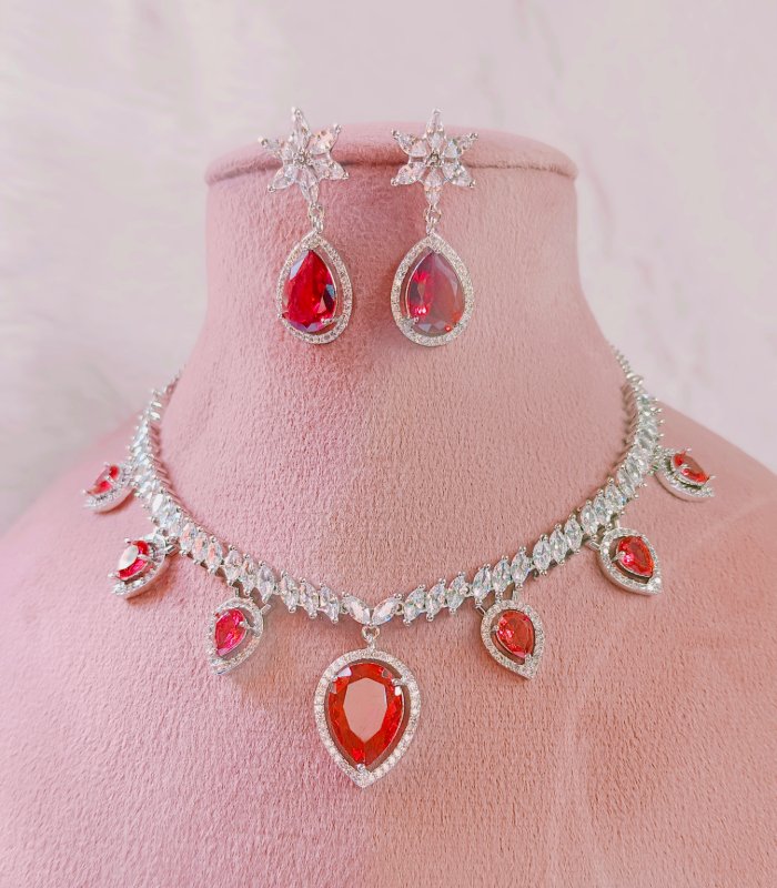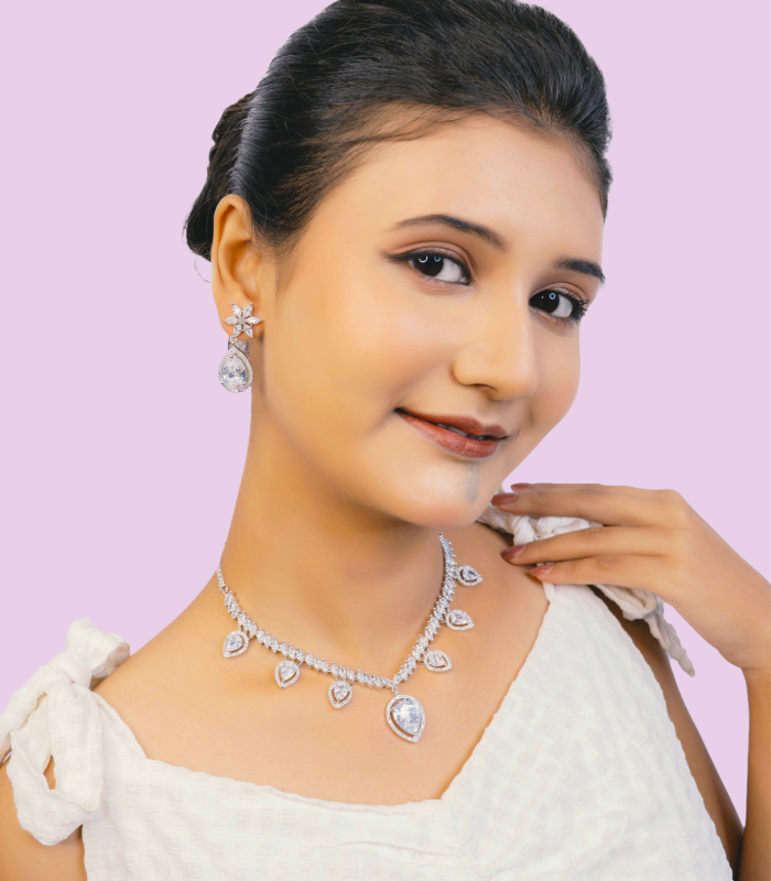 Platinum Finish American Diamond Necklace Set – Modern Jewelry Wholesale