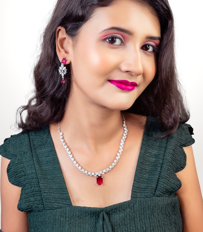 Premium CZ Necklace & Earrings Set – Wholesale American Diamond Jewelry for Parties
