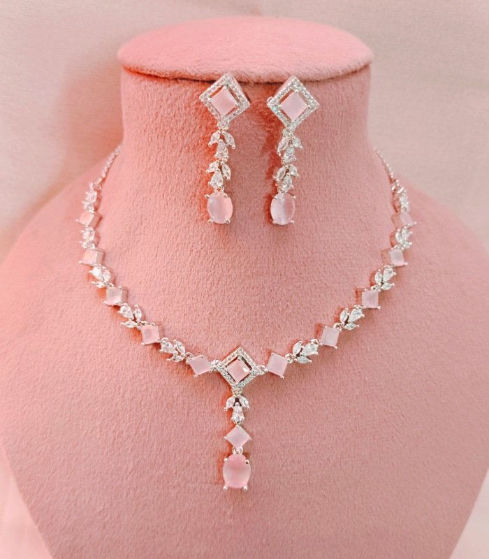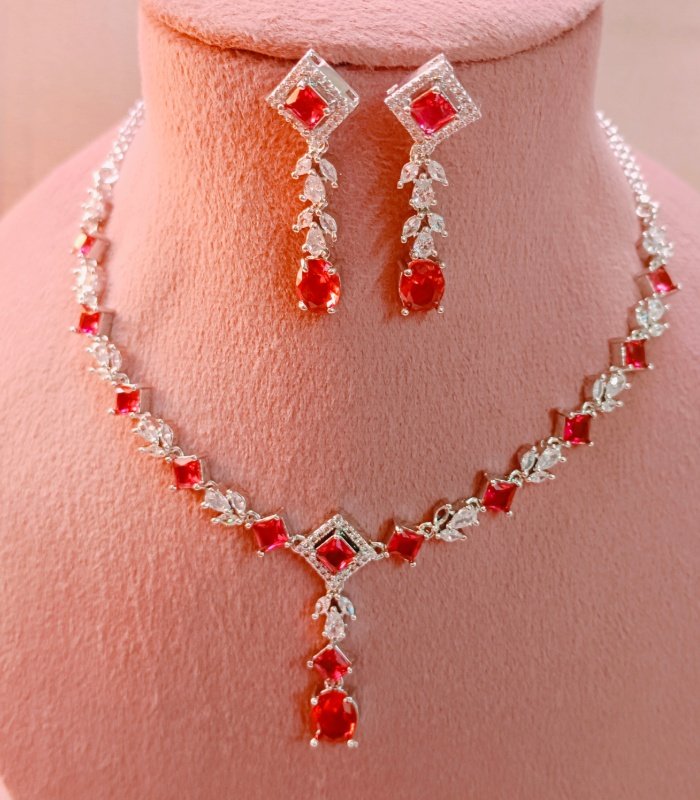Add timeless charm to your jewelry collection with this ruby American diamond necklace set. Export-ready and crafted with precision, it is the perfect choice for Valentine’s gifting, bridal trousseaus, and global fashion buyers.