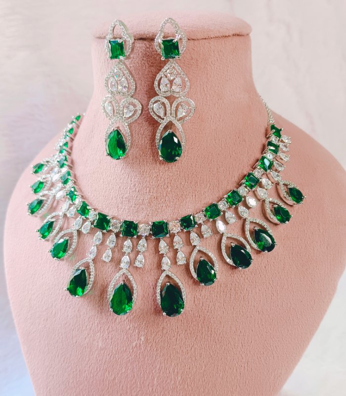 “AAA-grade Cubic Zirconia stones —American Diamonds available in ruby, emerald, sapphire, and more shades — designed for international fashion jewellery collections ”Fully Customizable as Per Customer Requirement”