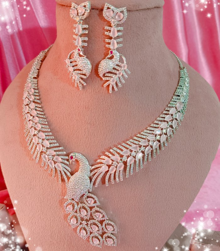 Peacock Design CZ American Diamond Necklace Set – Wholesale Bridal & Party Jewelry